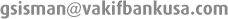 1177 Avenue of the Americas, 36th Floor, New York, NY 10036, USA Phone:+1 212 621 9400 Fax:+1 212 707 8745 Tlx: 679 1891 vakif ny SWIFT/BIC:TVBAUS33 Güldal ŞİŞMAN