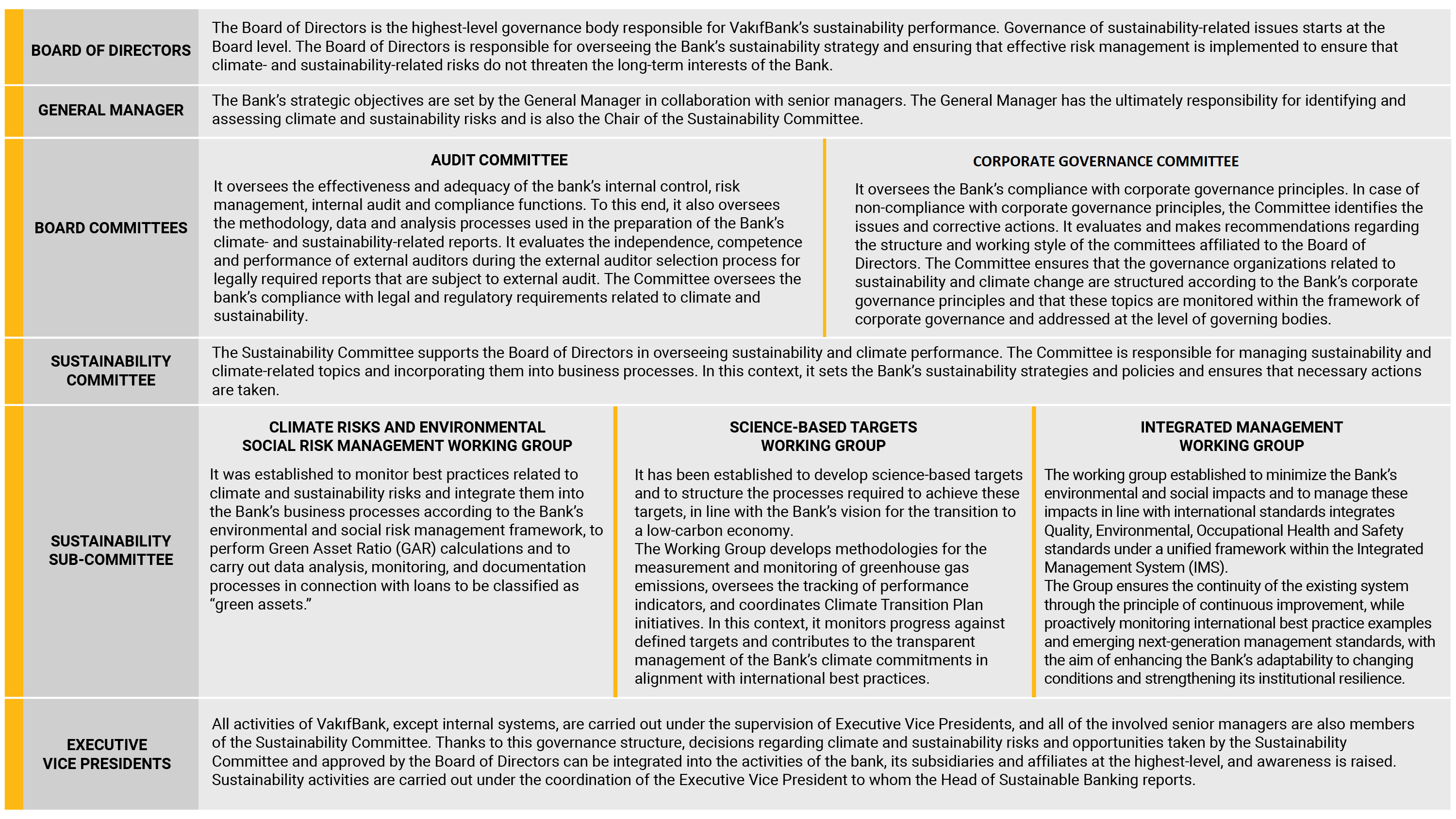 In line with our sustainability vision, we aim to create a more livable world for future generations. In this context, we restructured our organization in 2024 and established the Head of Sustainable Banking within our Bank, further strengthening our sustainability governance framework.