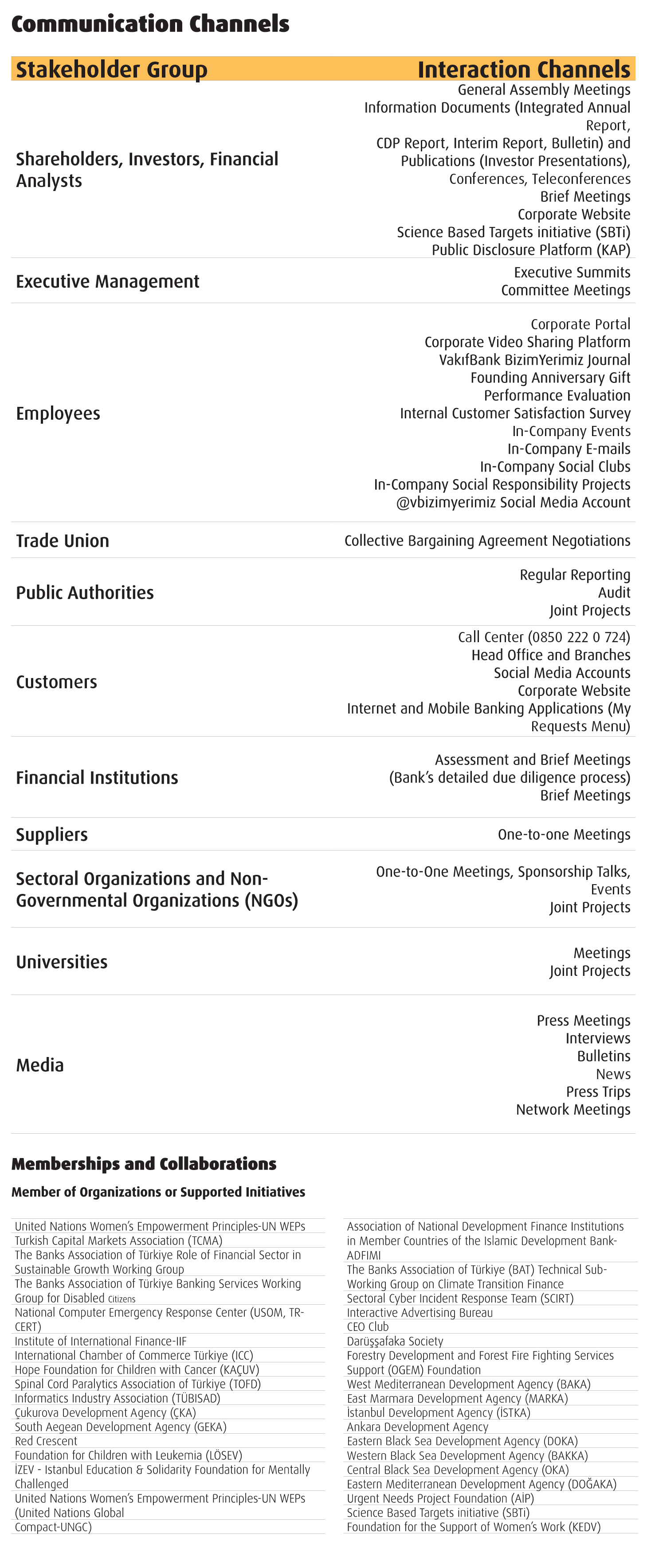 We attach importance to the contribution of all our internal and external stakeholders from all areas, from strategic planning to the material issues of our Bank. In this regard, we strive to make our dialogue permanent through various communication mechanisms.